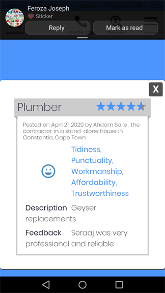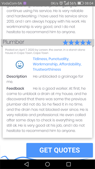 Do you provide any guarantee of your workmanship and/or services. If yes, please share the details here.Yes always,always leave client happy and always double check my work before I leave site,my work is always guaranteed