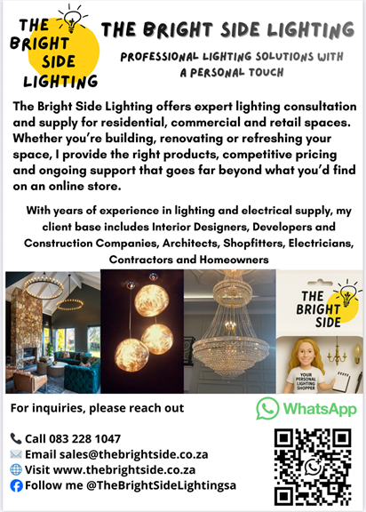 The Bright Side Lighting offers expert lighting consultation and supply for residential, commercial and retail spaces. Whether you’re building, renovating or refreshing your space, I provide the right products, competitive pricing and ongoing support that goes far beyond what you’d find on an online store.