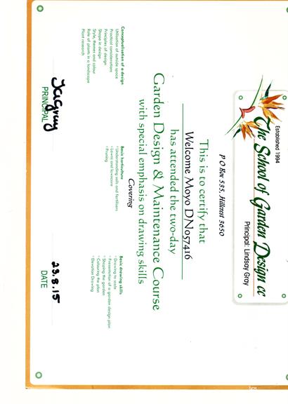 I've known William for six years. He is a consummate professional. Hard-working, honest and pro-active. He is a library on indigenous plants. I will recommend him to anyone. He's got the potential to be one of the Johannesburg's best landscapers.