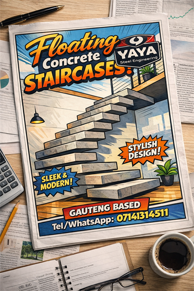 We are a Steel Fabrication & Welding company in Gauteng - We specialise with Aluminium, Stainless steel and Mild steel welding. We install BALUSTRADES and Floating Concrete STAIRCASES. At Yaya Engineering we install balustrades and staircases for private / commercial and industrial properties.