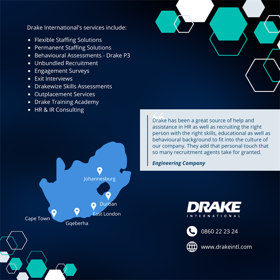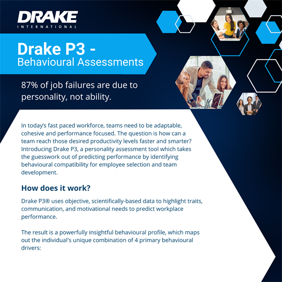 Drake International continues to be a global leader in flexible and permanent staffing, naturally evolving to offer a dynamic suite of Talent Management Solutions. Our mission is to create great career opportunities and increase your organisation's bottom line, by maximising the potential of your most important asset - your people.