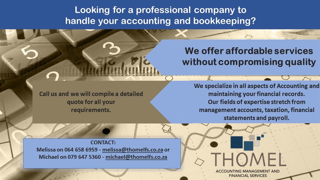 Book keeping and accounting services financials and payroll. Incl Vat & Tax returns