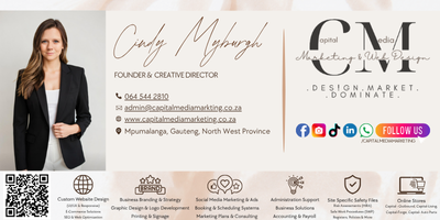 Capital Media Marketing & Web Design (Pty) Ltd is a dynamic, full-service creative agency based in South Africa, specializing in web design, digital marketing, graphic design, and business support solutions for small to medium enterprises, startups, and niche industries. With years of combined experience in brand building, online visibility, and client conversion strategies, we help businesses grow through tailored, result-driven services that blend design, functionality, and strategy.
